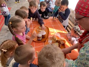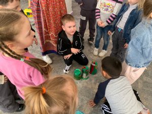 В Кутузовском СДК прошёл фольклорный праздник «Пасхальные забавы» для детей . Хозяйка Русской Избы радушно встретила ребят и познакомила их с традициями светлого праздника Пасхи — рассказала, откуда пошёл этот добрый праздник, поделилась, как готовились к Пасхе и отмечали её в старину, показала, какие весёлые игры сопровождали встречу Пасхи. А потом началось самое интересное — ребята с удовольствием приняли участие в народных пасхальных играх: сначала сыграли в эстафету с яйцом — кто быстрее и аккуратнее пронесёт яйцо в ложке, не уронив его; затем поиграли в «Катись, яичко»: дети передавали друг другу крашенку под весёлую песню, и тот, у кого в руках оказалось яйцо становился водящим.Дальше дети искали спрятанные в избе пасхальные яйца в игре «Кто больше соберёт яиц?», соревновались, чьё яйцо дольше крутится на тарелочке, и пускали крашенки с горки в игре «Каталочка» — у кого дальше укатится. В завершении праздника все поздравили друг друга со Светлой Пасхой, пожелали мирного неба, здоровья и добра и отведали все, что приготовлено на пасхальном столе: кулич, яйца . Благодарим всех, кто пришёл, за улыбки, задор и отличное настроение! Пусть Пасха принесёт в каждый дом радость, тепло и благополучие!
