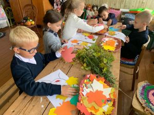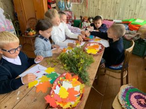 Осенью природа играет разными красками, а настроение наполняется вдохновением для занятий творчеством.В Кутузовском СДК в Центре традиционной русской культуры провели цикл мастер-классов « Осенняя прическа».В начале мероприятий заведующая ЦТРК предложила ребятам рассмотреть осенние листья и назвать к каким деревьям они относятся. Рассказав , что это прекрасный природный материал для аппликаций. С ребятами  реализовали творческую идею: из ярких осенних листьев создавали причёски.